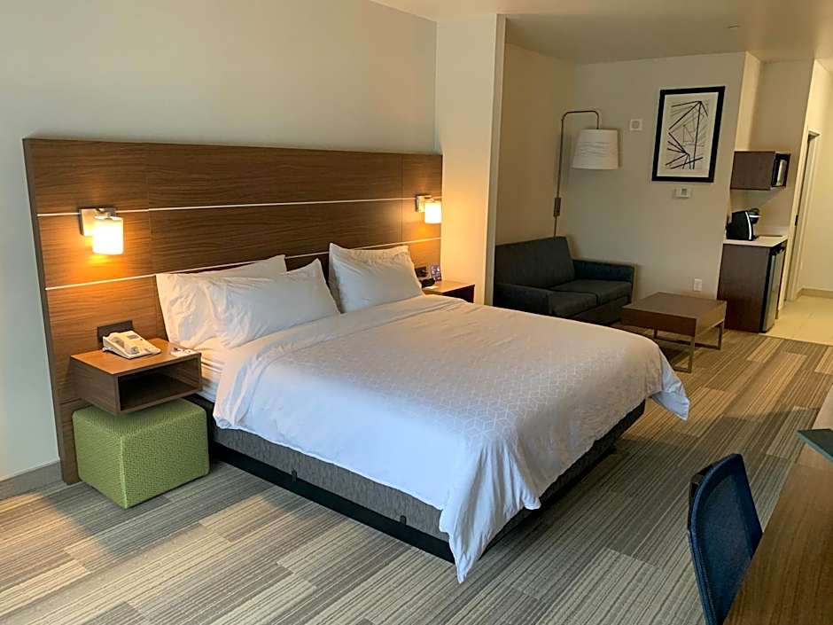 This spacious suite features a separate sitting area with a sofa bed, a microwave and a fridge.